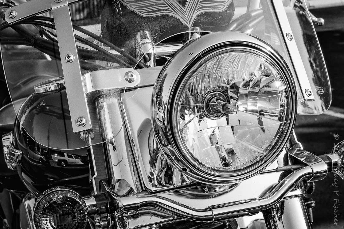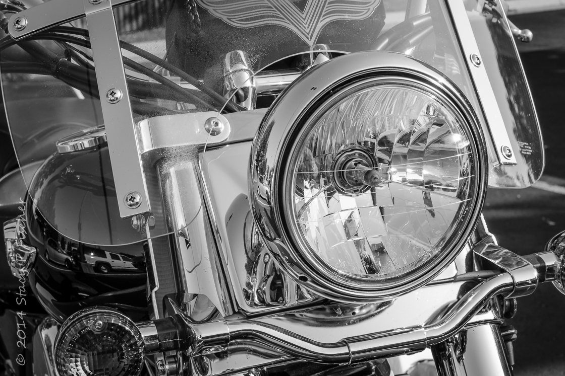 Very nice Stacy, great change into B&W. This highlighted all the details and made the photo much more crispy and attractive. I love the Silver effect final version so, I’ve named it “The Cars Tattooed Motorcycle”!