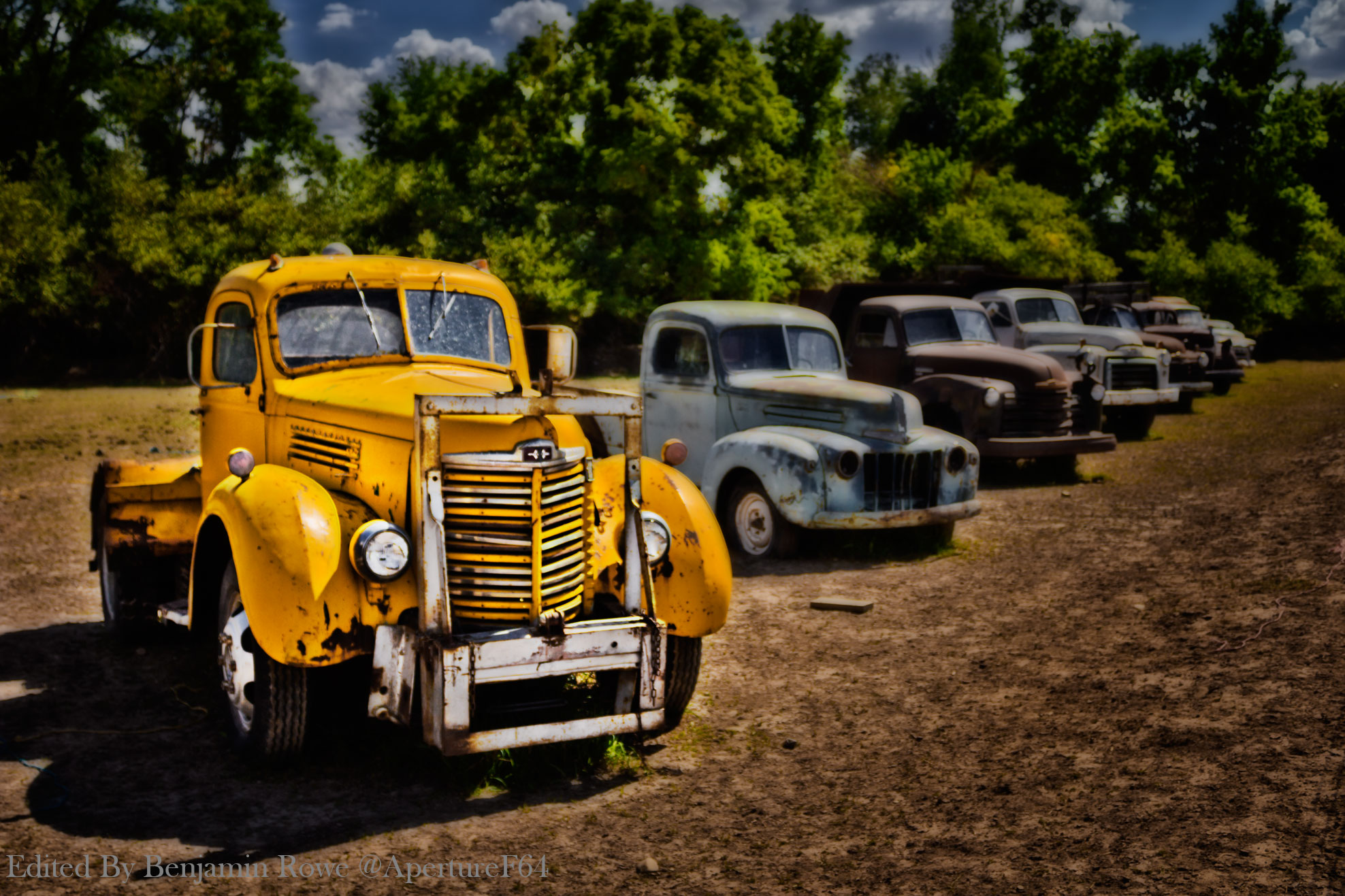 When I saw Emilio’s trucks, I immediately thought of the movie “Cars” and the old television show “The Waltons” (yeah, I know I’m dating myself badly with this one). Using the “Cars” approach, I could create an oversaturated cartoony look; using “The Waltons” as inspiration, I could create an old-time photo reminiscent of the era of the Great Depression, the time period in which the show was set. I guess you know what my choice was. While I normally put together a video of my post-processing steps, I’m still trying to find a user-friendly screen capture program to use with my new computer. Stay tuned to next week’s ABFriday, as my plan is to post my video there of this week’s post-processing efforts.