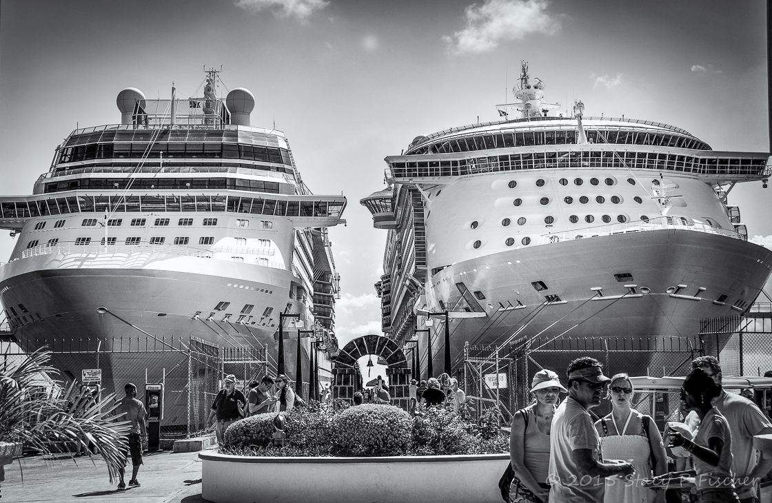 Wow those are huge ships! You did a great B&W rendering also. 😀