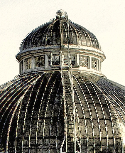Chris says: For my first ever participation in the One Photo Focus challenge, this wasn’t the easiest image to work with, particularly for a newbie to Photoshop. But it was fun and I learnt a lot. I loved the old glasshouse and dome standing proud through years of history. I wanted to emphasise them and the passage of time. No more ugly constructions, just the graceful glasshouse and a ‘big sky’. For details of what I did, check out my post here.