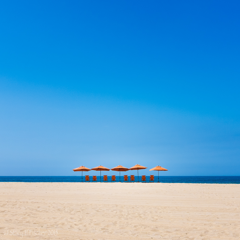 The story? My husband and I were walking back from Santa Monica Pier and heading to our car when I spied this still life in the distance. It was a good 2- to 3-minute walk from the path we were on to get within range for my 23mm fixed lens and we were both a bit hot and tired, but I just had to shoot this. I started a brisk walk toward the chairs (since my husband was patiently waiting).