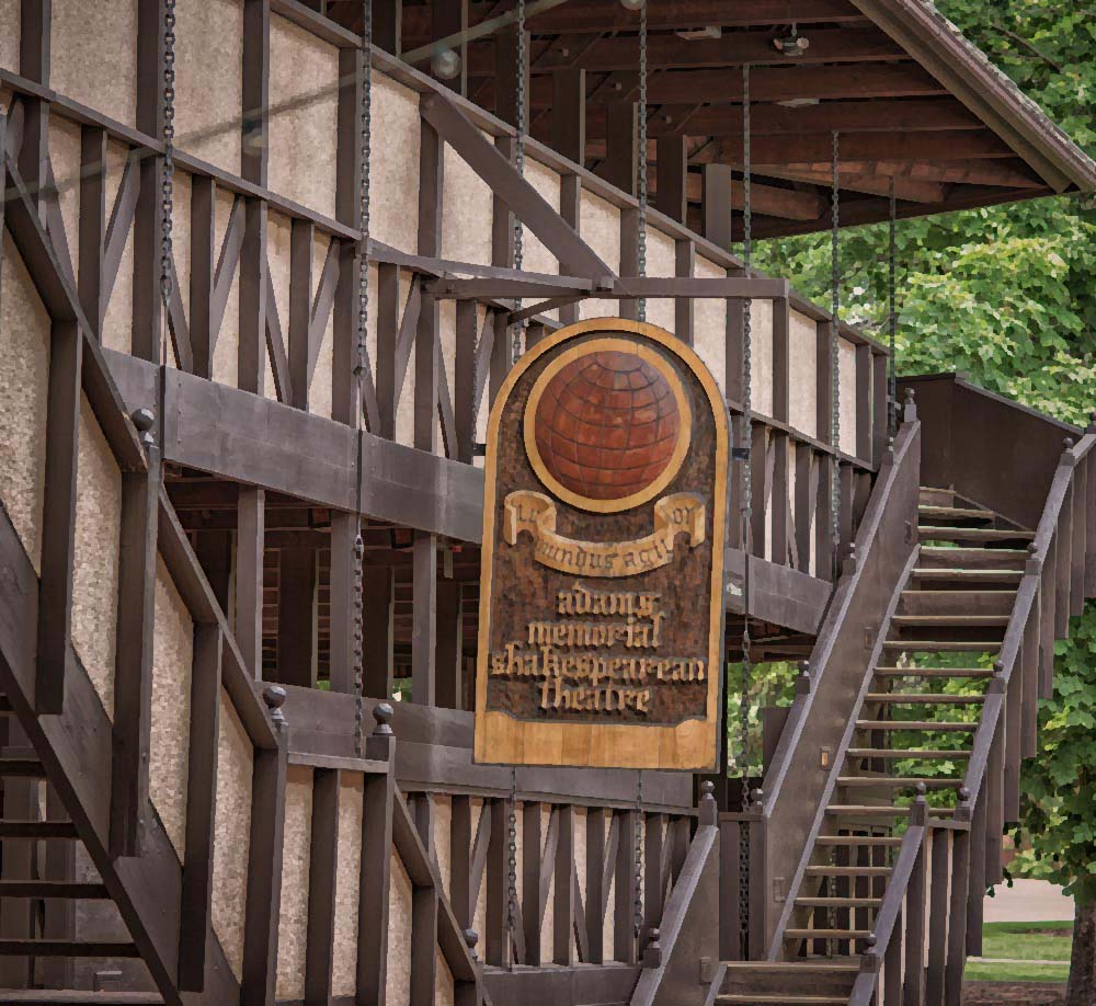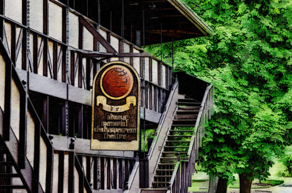 Sherry says: I used the photo by Nancy Merill of Adams Memorial Shakespearean Theater donated and created for this After Before Friday for the March One Photo Focus challenge. I use many multiple layers in Photoshop; such as color inversions and overlays, brightening and darkening, etc. until it had the look I was after.